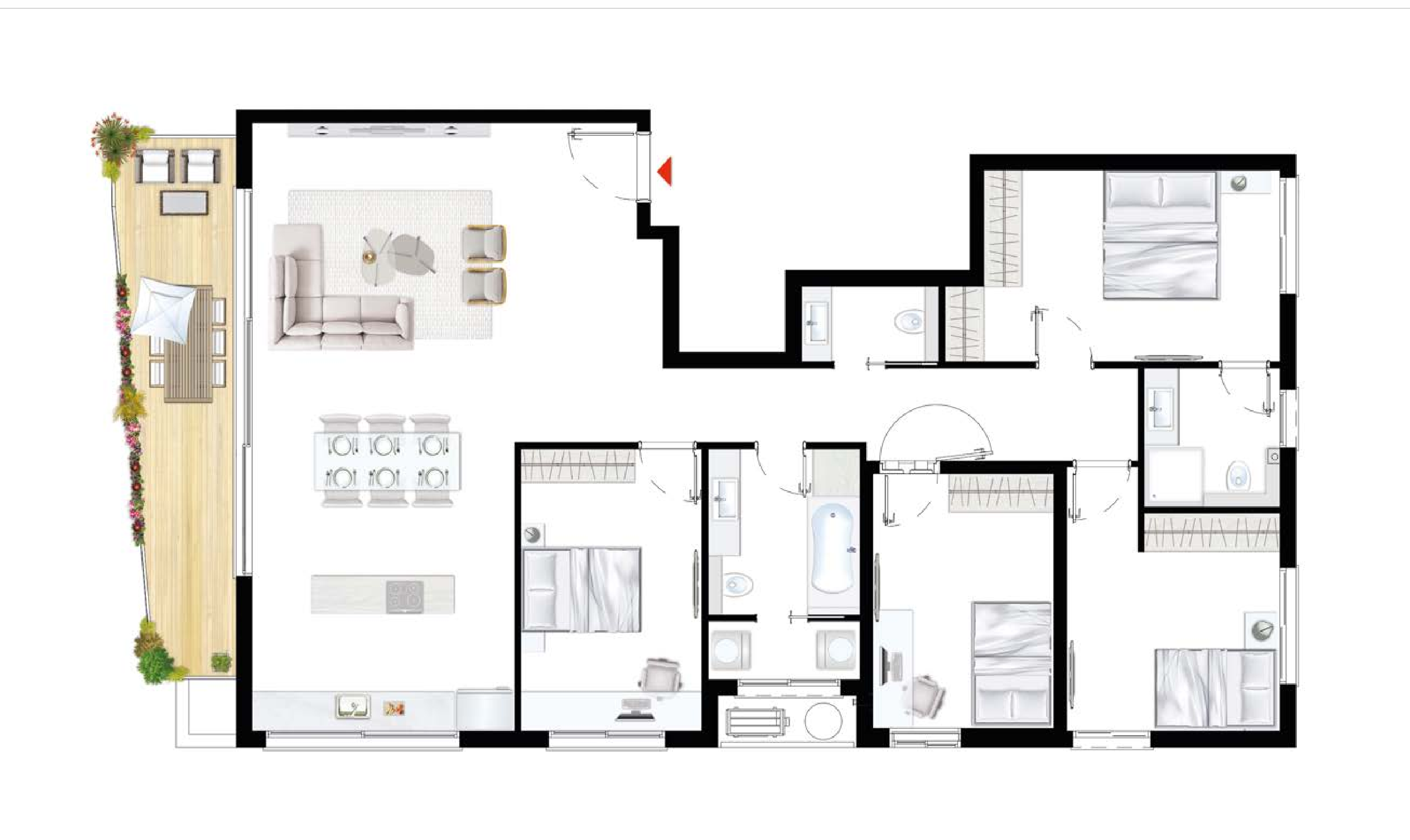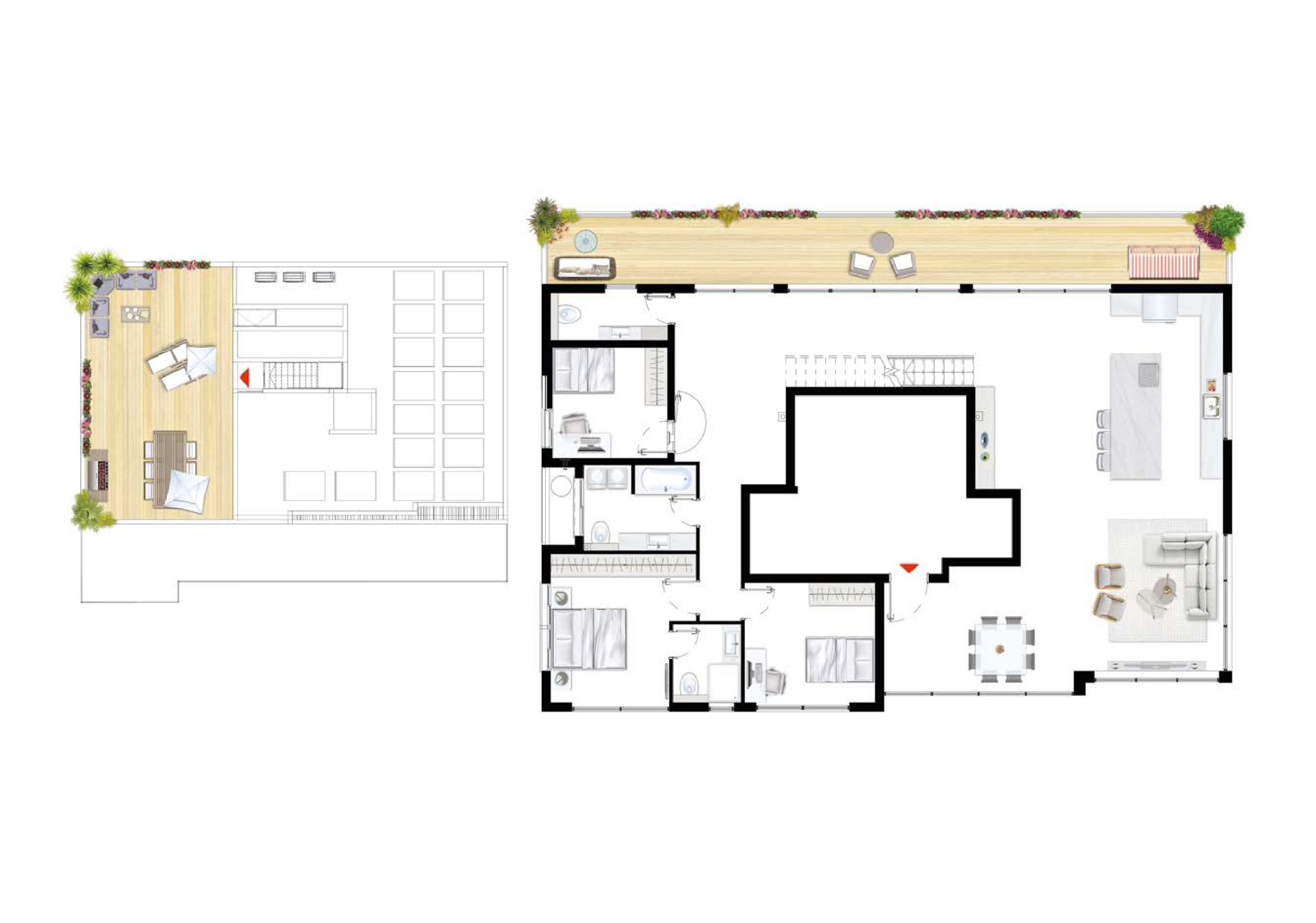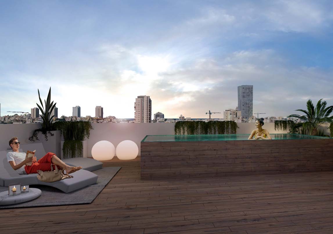 תמהיל הדירות: דירות גן עם חצר פרטית, דירות 3-5 חדרים עם מרפסות שמש, ופנטהאוזים עם גג פרטי.