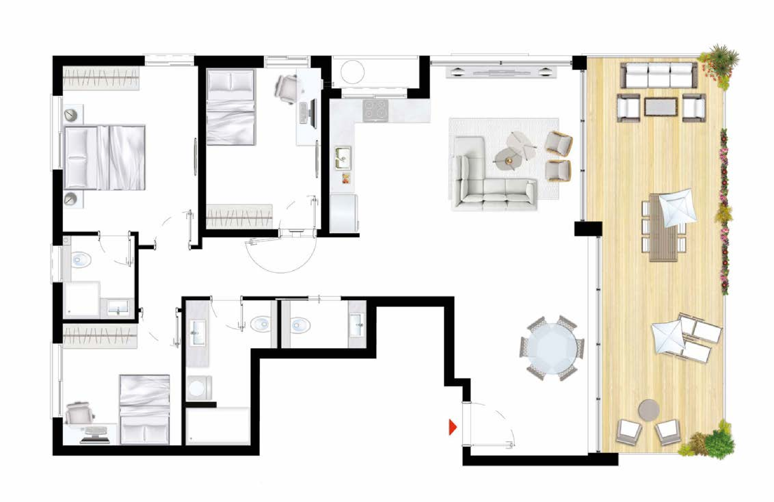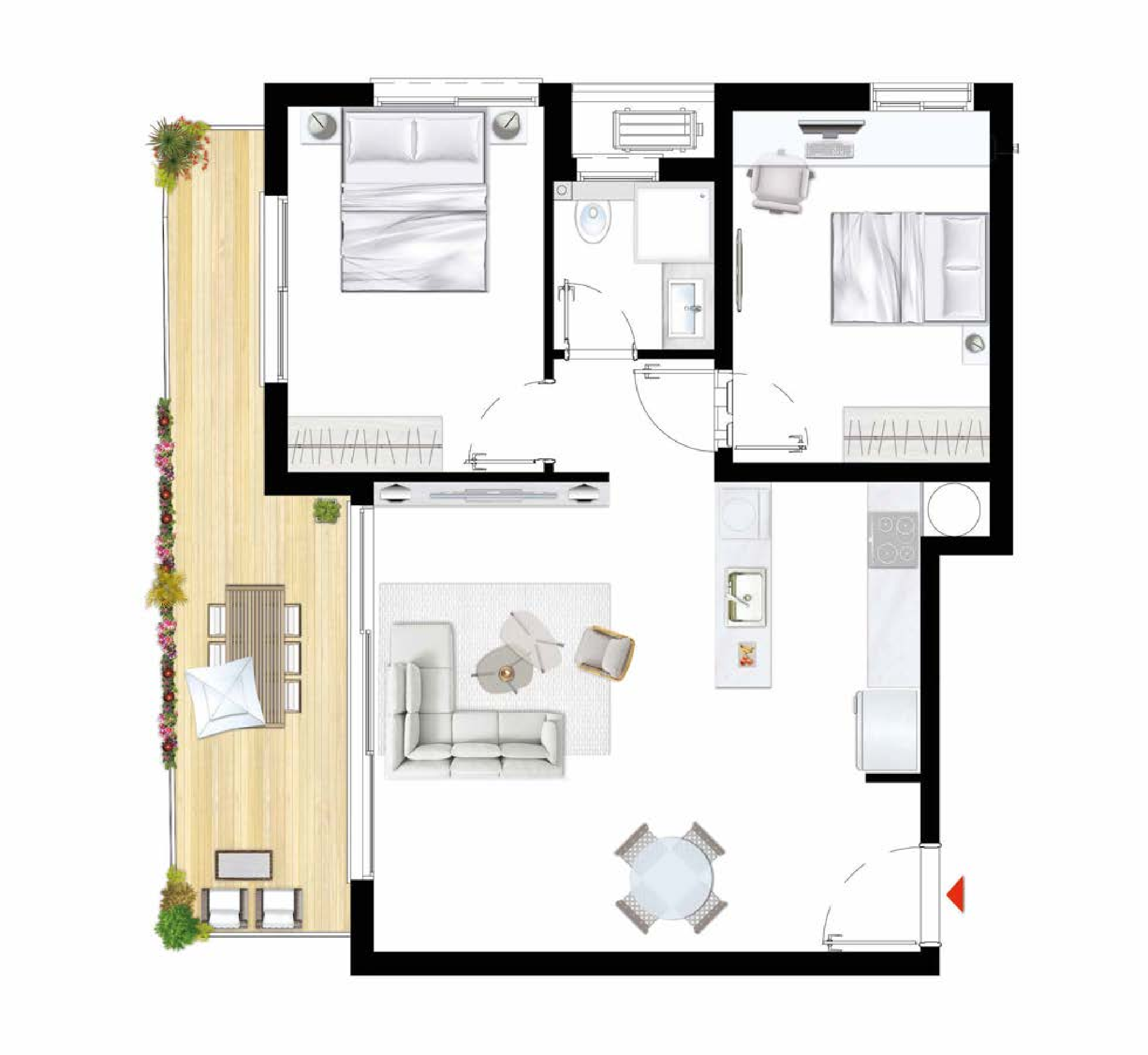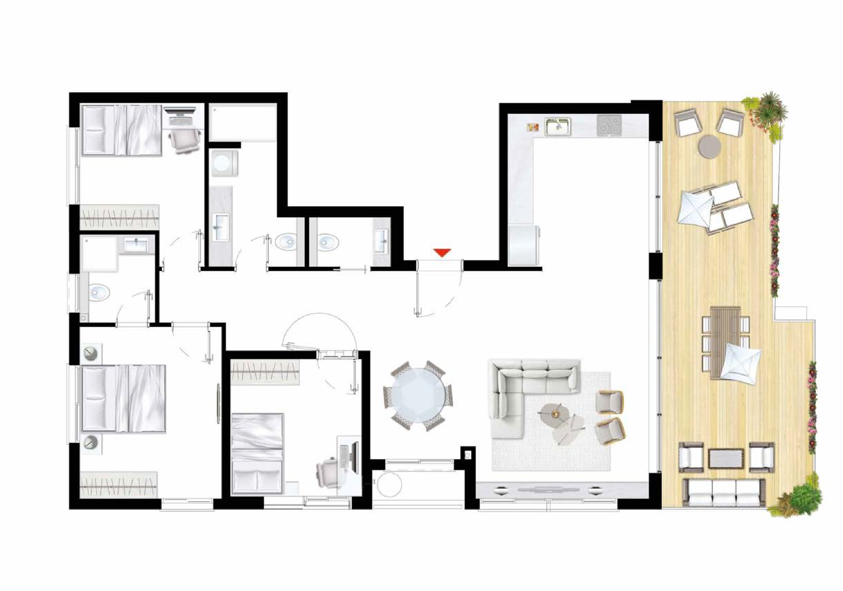 תמהיל הדירות: דירות גן עם חצר פרטית, דירות 3-5 חדרים עם מרפסות שמש, ופנטהאוזים עם גג פרטי.